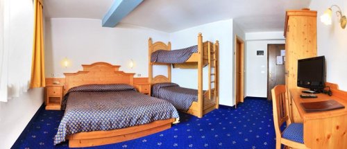 L’albergo offre varie tipologie di camera - fra Standard, Superior, mini Suite, Suite e Family Suite - di cui alcune mansardate, altre con vista sulle piste.
