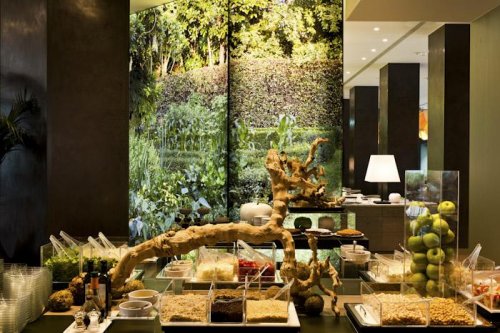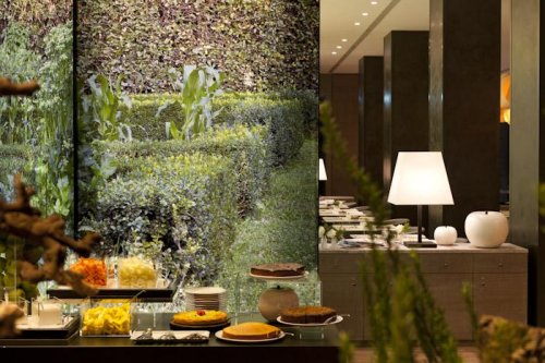 Grazie alle sue ampie vetrate, il Ristorante Orto offre un ambiente scenografico e luminoso, in cui risaltano le suggestive gigantografie che riproducono un lussureggiante giardino coltivato a orto.