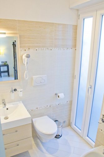 Le camere, ampie e luminose, sono dotate di TV color, connessione Wi-Fi a Internet, aria condizionata, riscaldamento e bagno privato con doccia e asciugacapelli.