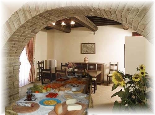 L'appartamento, recentemente restaurato in stile umbro con travi a vista e pavimento in cotto, ha una capienza da 2 a 7 persone. Composto da due ampie camere da letto, salotto con divano letto, cucina attrezzata, terrazza panoramica, TV color, cassetta di sicurezza e doppi servizi privati.