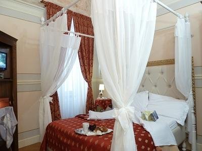 Le camere di charme sono dotate di climatizzazione estiva e invernale regolabile autonomamente, TV color LCD satellitare, lettore DVD - DVX, servizi privati con doccia, asciugacapelli e set di cortesia.