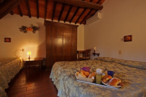 Tutte le camere sono diverse tra loro, arredate in stile tipico toscano con pavimenti in cotto e letti in ferro battuto, e dispongono di TV color satellitare, aria condizionata, bagno privato.