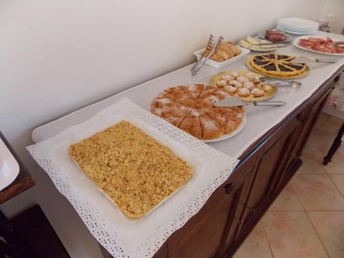 Ogni mattina il B&B Terra dei Santi è lieto di offrire una ricca colazione a buffet: in estate in giardino o in veranda, in inverno in una sala dedicata, o è possibile richiederla direttamente in appartamento. Il sontuoso buffet varia cercando di offrire sempre i dolci tradizionali umbri tipici della stagione in cui si soggiorna: pizze dolci pasquali, rocciata con le mele, maccheroni dolci.