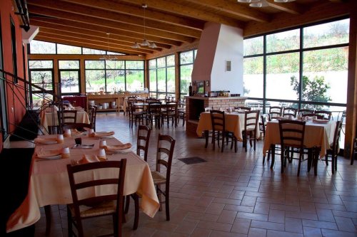La colazione a buffet è servita nella sala degustazione, mentre nel periodo estivo nella cornice del patio.