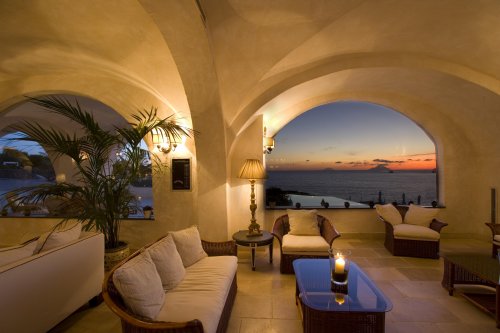 Gli interni si distinguono per le tonalità chiare e per l'armoniosa eleganza degli arredi in tipico stile eoliano.