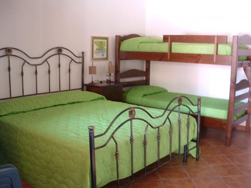 - bilocale con camera matrimoniale, letto a castello, disimpegno, bagno, soggiorno, angolo cottura, veranda esterna coperta.