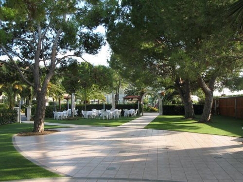 A disposizione più di 3500 mq di area relax con un campo da calcio in erba sintetica, un campo da volley e tennis, una piscina esterna di forma irregolare con un’area riservata ai bambini e una cascata a getto, e una pista da ballo esterna.