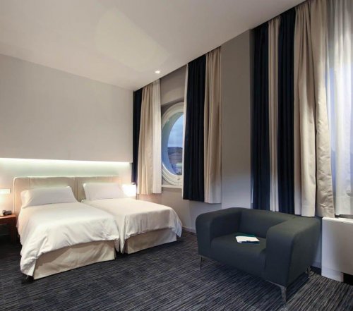 Le camere sono arredate in stile moderno e dispongono telefono con linea diretta, TV LCD con Sky e Pat TV, ampio desk da lavoro, connessione Wi Fi a Internet, aria condizionata, bagno privato con vasca o doccia.