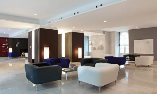 La struttura dispone al piano terra di un grande ambiente aperto con la reception, zone lounge e wine bar, sala meeting arredata delle più moderne tecnologie ed illuminazioni.