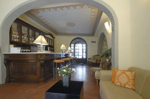 L'hotel è accessibile attraverso due ingressi: il primo (in via Cresci) si affaccia sul centro storico, mentre il secondo (in via Marconi) immette nel grazioso giardino all'italiana con la piscina dalla forma singolare, circondata dalle piante dei limoni e degli aranci nei loro tipici orci toscani.