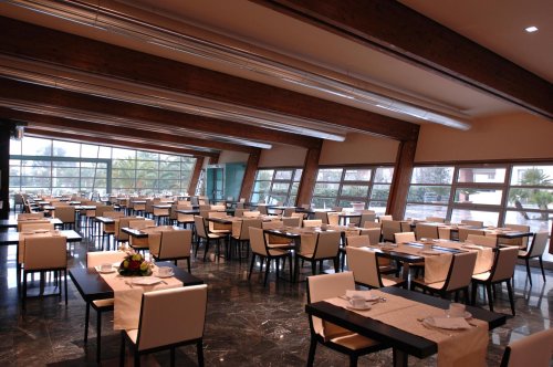 L'ampia e luminosa sala ristorante, con vista sul parco termale delle "Acque Albule", offre piatti tipici della tradizione italiana e laziale, seguendo un gusto sano fatto di abbinamenti corretti e ben bilanciati.