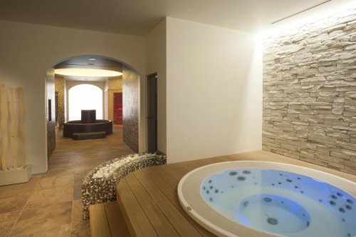 Il bagno dispone di doccia, grande vasca Jacuzzi per 2 persone, bagno turco, idromassaggio.