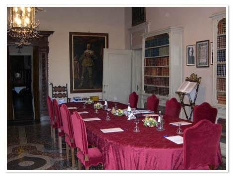 L'elegante sala da pranzo ha una capienza massima di circa 150 persone e viene utilizzata per ricevimenti, rinfreschi, pranzi di lavoro, cene di gala e cerimonie.