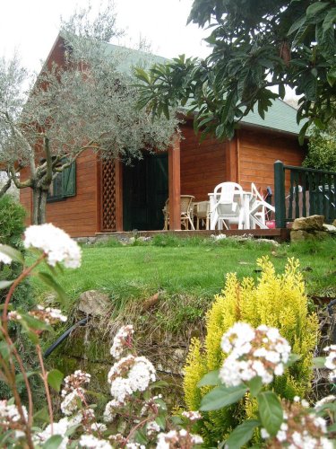 Chalet di 45 mq composto da zona soggiorno-cucina con divano-letto per due persone (2 letti singoli), bagno con doccia, soppalco con letto matrimoniale e terrazzo esterno con tavolo e sedie.