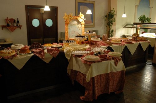 La prima colazione, il pranzo e la cena vengono serviti a buffet.