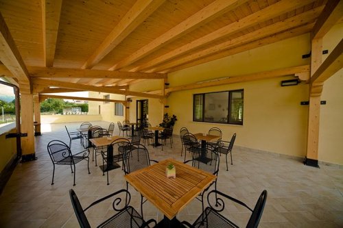 Il Ristorante è in grado di accogliere fino a 70 persone ed è in parte sormontato da una suggestiva tettoia in legno.