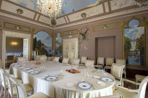 All'interno della Villa si trovano cinque sale museo al piano nobile, tutte diverse e riccamente decorate con affreschi e stucchi originali nelle volte, damascato in tensione e boiserie in legno alle pareti, pitture alle porte, arredamenti dell’epoca, profusione di cristalli, porcellane, argenti e splendidi pezzi di antiquariato.