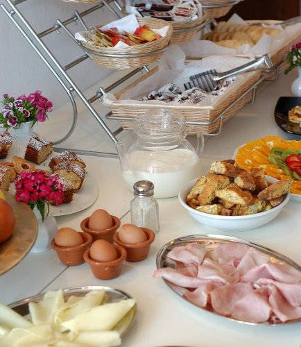 Al mattino viene allestito un elegante buffet con un vasto assortimento di frutta fresca, succhi di frutta, yogurt, cerali, caffè espresso e cappuccino.