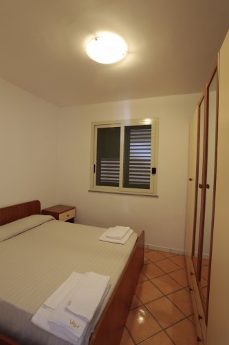 - Trilocale per quattro/sei persone con camera matrimoniale, cameretta con due letti singoli o a castello, soggiorno con angolo cottura e divano letto matrimoniale.
