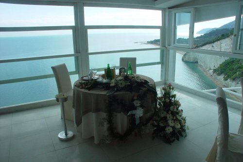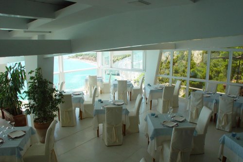 La sala ristorante dona un tocco di esclusività alla Villa offrendo una vista mozzafiato sulla baia sottostante e un panorama tra i più suggestivi della costa garganica.