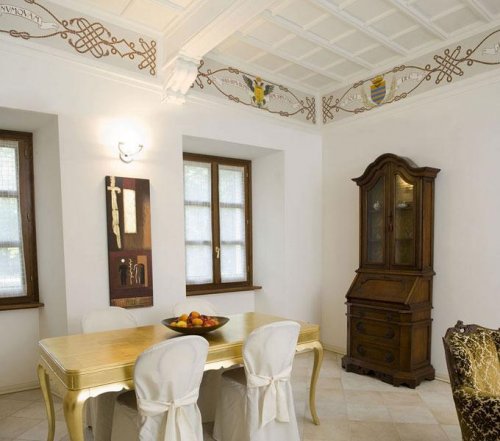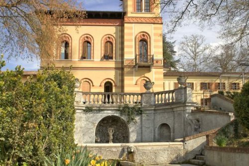 Al suo interno la villa offre, al piano terra, stupende sale ottocentesche con splendidi soffitti affrescati e, nelle cantine, grandi sale con suggestive volte in mattoni a vista.