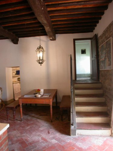 Il salone con camino e la cucina con antico forno a legna rendono suggestiva l'atmosfera.