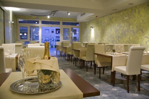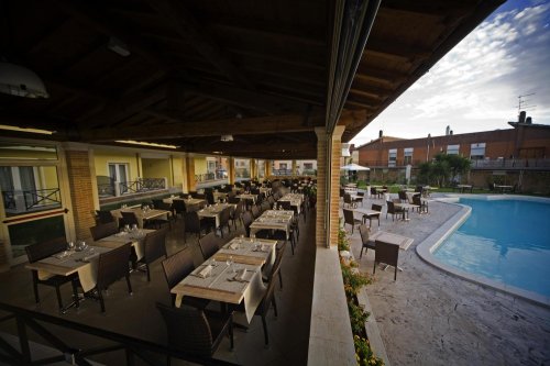 L'Hotel dispone di due sale ristorante, una interna, e una veranda panoramica che rende suggestiva l'atmosfera durante la cena degli ospiti.
