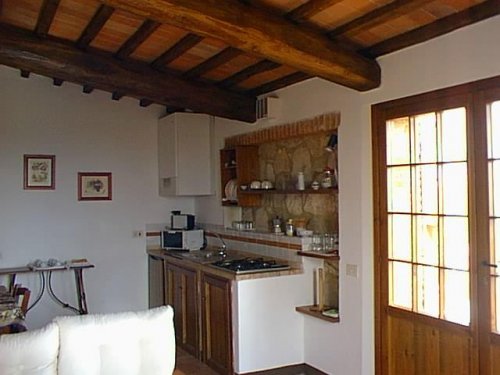 L'appartamento Il Cipresso, situato al piano terra, si affaccia con i suoi grandi archi su un vecchio e particolare cipresso e dispone di una camera matrimoniale, bagno con doccia, saletta con caminetto e angolo cottura.