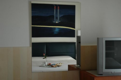 - Camera Artista arricchita da opere di artisti contemporanei italiani e stranieri, dotata di TV color, telefono, frigobar, impianto di climatizzazioneautonomo, connessione Wireless a Internet, bagno privato con asciugacapelli.