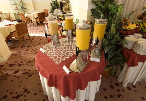 Breakfast is served each morning in the breakfast room, consisting of an American style buffet with sweet and savoury items, both hot and cold, accompanied by fruit juice and coffee.