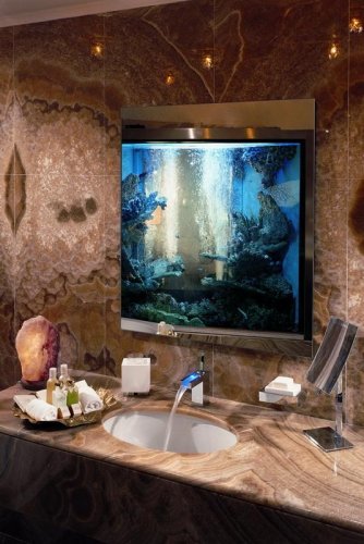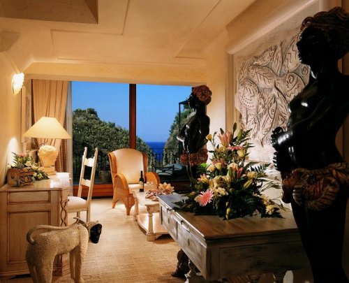 Apartament Atlantide posiada ponadto akwarium z rybkami tropikalnymi i umeblowany taras z basenem, z którego podziwiać można malowniczą panoramę zatoki.