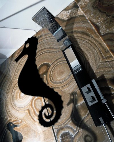 Łazienka z wanną z hydromasażem dostępna jest w dwóch wersjach - z marmurowymi wykończeniami onice dla pań lub w czarnym marmurze dla panów).
