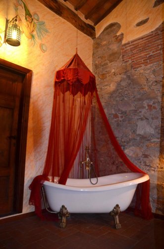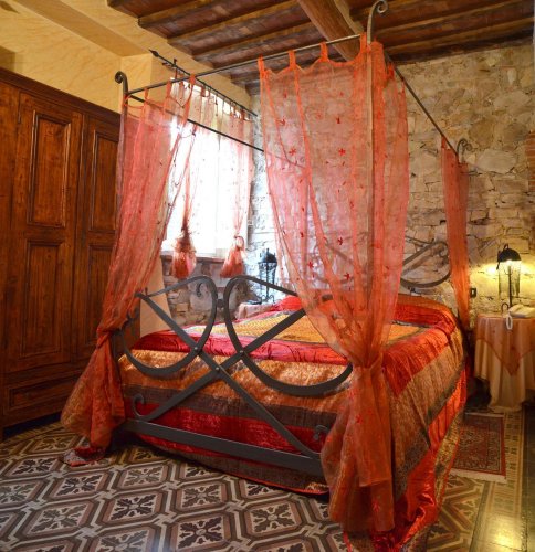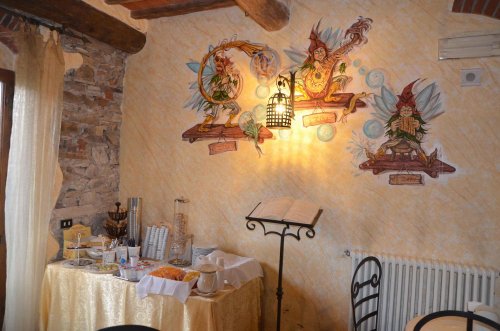 The B&B is set in a traditional local farmhouse which dates back to the 1800's. The interior features exposed beams and Florentine terracotta floors, rustic décor and walls with delightful frescoes of fairies and pixies.