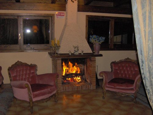 La ricca colazione viene servita nell'accogliente salente con camino.