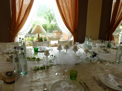 Il Ristorante dispone di più sale per i pranzi e le cene e dalla primavera è possibile mangiare nella splendida terrazza rivolta sulla Vallata Pianzio.