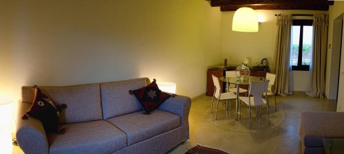Tutte le suites, essenziali e confortevoli, sono dotate di aria condizionata, ampio bagno con vasca e doccia combinate, area living con minibar e Tv con lettore dvd e cd, giardino esterno ricco di palme, buganville ed altra vegetazione tipica del luogo.