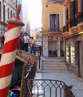 The hotel is after this typical Venetian bridge, on the left hand side.