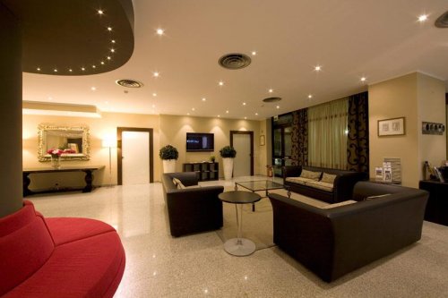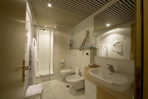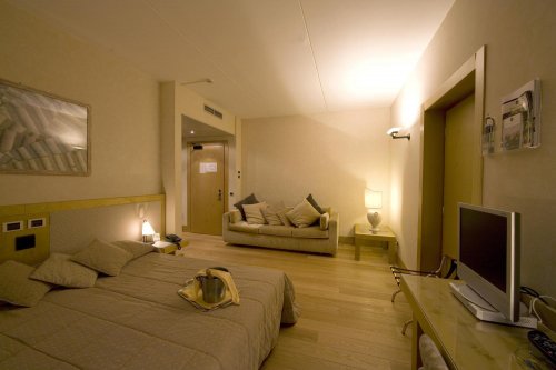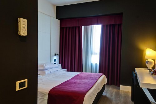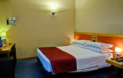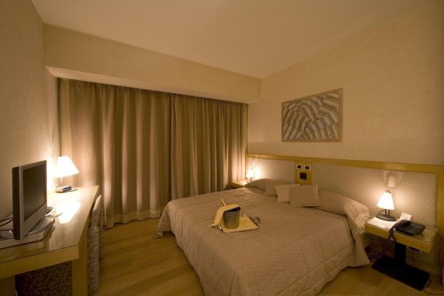 The hotel has 116 double rooms, completely soundproof, providing satellite color TV, Sky TV, Wi-Fi Internet connection, bar fridge, coffee maker, telephone located in the bedroom and bathroom, hairdryer and air conditioning/heating.