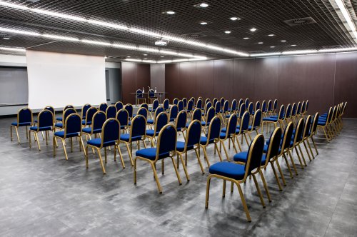 - Level 1: 250 square meter open space (Coffee breaks or meetings for up to 250 people), Press Room and meeting hall from 10 to 150 seats, Director’s Room with modern technology connected directly to the Auditorium and translation booths.