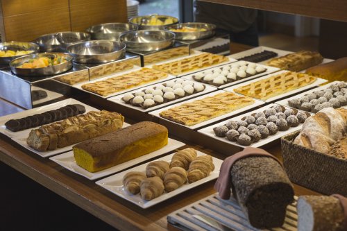 The international breakfast features an ample offer of sweet and savoury products accompanied by an cafeteria service.