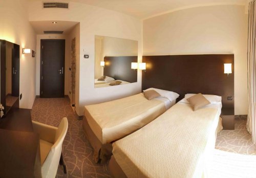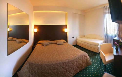 Completamente insonorizzate, le camere sono dotate di TV color satellitare LCD, telefono diretto, radio, aria condizionata e riscaldamento autonomi, connessione Wi-Fi a Internet, cassetta di sicurezza, bagno privato con doccia, asciugacapelli.