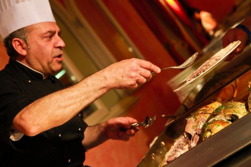 Ristorante climatizzato e veranda coperta con pasti serviti a buffet per poter comodamente gustare i piatti della cucina mediterranea (vino, acqua, birra e soft drink inclusi); zona pizzeria e griglieria a cena su prenotazione.