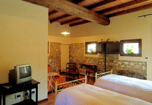 L’agriturismo dispone di 12 comode camere doppie, tutte dotate di TV color satellitare, aria condizionata, divano letto (solo in alcune), bagno privato.