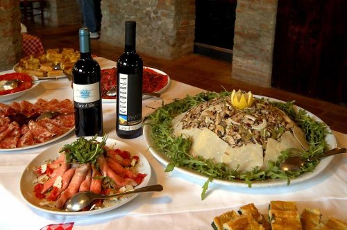 Le portate sono accompagnate dai vini prodotti direttamente in azienda.