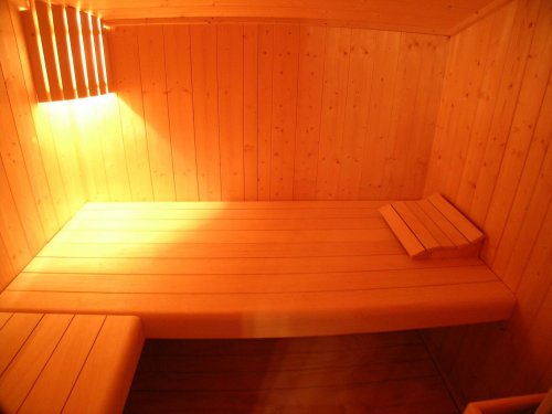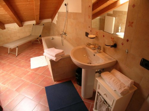 Lo spazioso bagno in comune è provvisto di vasca/doccia e sauna finlandese.