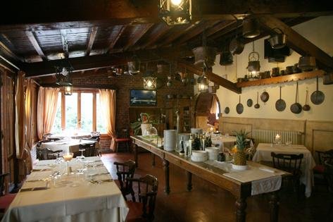 Il Ristorante Querce si presenta con interni in legno, antichi rami, sedie "old America" e angolo con camino.