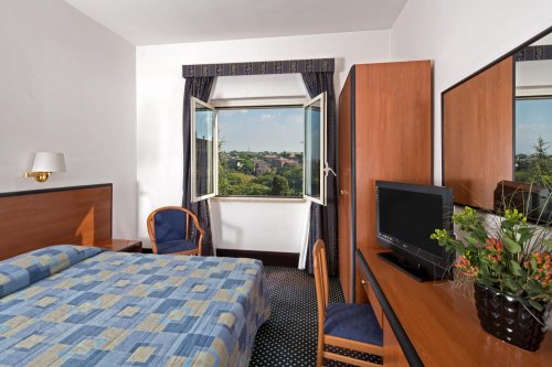 Dzięki bardzo dobremu połączeniu z centrum Rzymu, hotel jest doskonałym miejscem na wypoczynek dla wszystkich podróżujących w celach służbowych jak i dla turystów nastawionych na zwiedzanie Wiecznego Miasta.