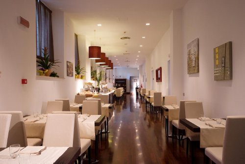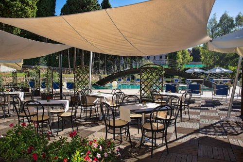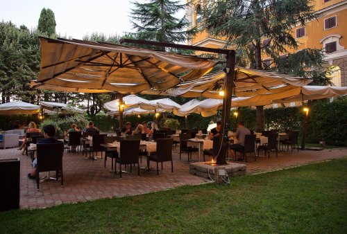 Elegancka restauracja hotelowa oferuje tradycjonalne dania kuchni rzymskiej oraz typowe potrawy włoskie.