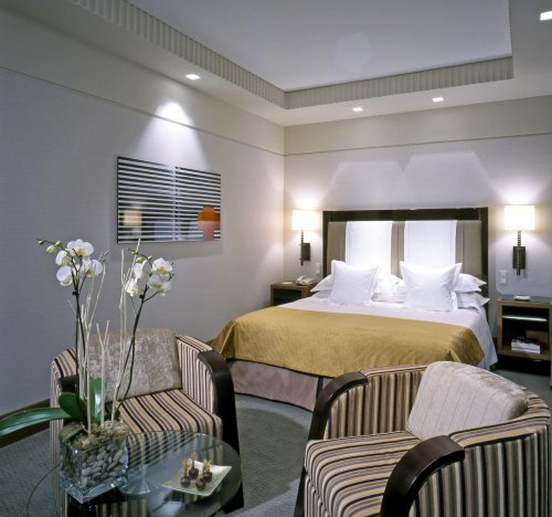 - There are 79 Superior rooms found in the Golden Two building characterised by warm beige, green and maroon colours. They include a Queen size bed, a direct dial telephone, a 25" flat-screen television with interactive service, TV On Demand, high-speed internet access, a minibar with an extensive selection, a safety deposit box, blackout curtains, and an en suite marble bathroom with a hairdryer, a scale, a magnifying mirror and a luxurious set of complimentary toiletries.