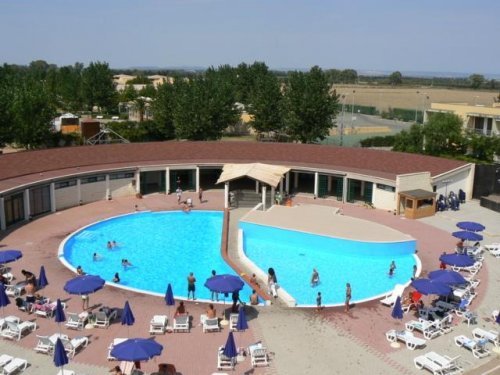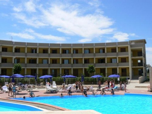 L’edificio si sviluppa su tre piani, dotato di ascensori e dispone di piscina a forma circolare divisa in due settori, uno dei quali destinato ai piccoli ospiti, ristorante, bar, campetto sportivo nel parco adiacente la struttura, campo polivalente (tennis e calcetto), campo di bocce, negozio, spiaggia a 900 mt, servizio navetta.